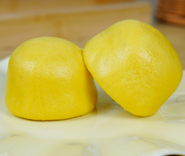 Pumpkin steamed bun blends tender pumpkin-infused skin with a rich black rice and yam filling, turning simple ingredients into a deliciously satisfying treat.
